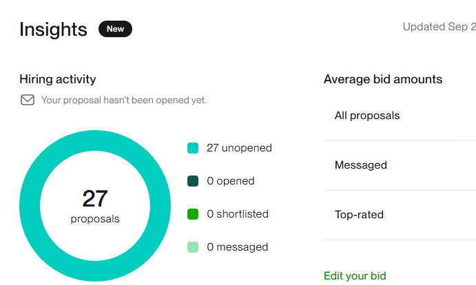 In early August I submitted a proposal for a project that supposedly needed 5 freelancers who could start immediately. Regarding that post, two weeks later, none of the submitted proposals had been viewed. A few days ago, the exact same project was posted, same job description, everything the same as the post from August. Two days later, 20+ proposals have been submitted and none of them have been viewed, and no freelancer has been contacted. I remembered this project posting from August and I felt that this was a fake posting, however, I submitted a bid a few days ago just to see what would happen. As of this writing...nothing has happened. I seriously believe that this is one of the many fake duplicate postings on Upwork.